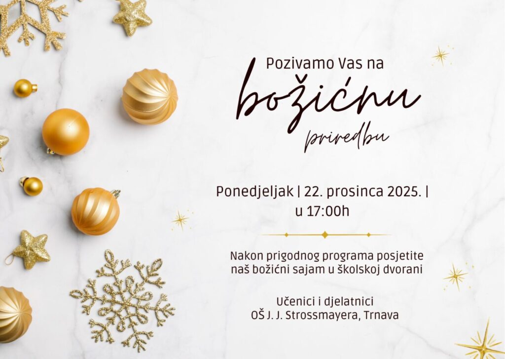Pozivamo vas na našu božićnu priredbu koja će se održati u ponedjeljak 22. prosinca 2025. u 17:00. Nakon prigodnog programa posjetite naš božićni sajam u školskoj dvorani.