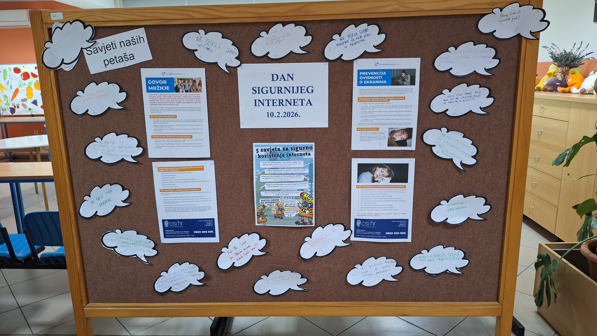 Učenici petog razreda na satu razrednika pričali su o sigurnom ponašanju na internetu, dobili su edukativne knjižice HAKOMa „Klikni, ali pazi! Kako se zaštititi u svijetu interneta i pokretnih uređaja“. Nakon toga su pisali svoje savjete za sigurno korištenje interneta koje smo stavili na školski pano kako bi mogle poslužiti i ostalima – malima, ali i velikima.