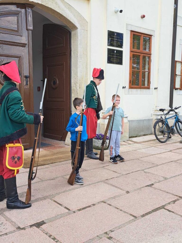 U Muzeju Brodskog Posavlja razgledali smo dva muzejska postava, a u Tvrđavi smo doživjeli kostimirani prikaz vojne straže, postrojavanje te ulazak uz propusnicu. Ispred crkve sv. Ane dočekala nas je kraljica Marija Terezija, s kojom su se učenici rado fotografirali. Također smo posjetili tamnicu i saznali više o važnosti Tvrđave u 18. i 19. stoljeću.
