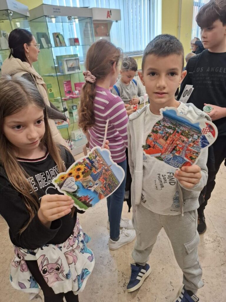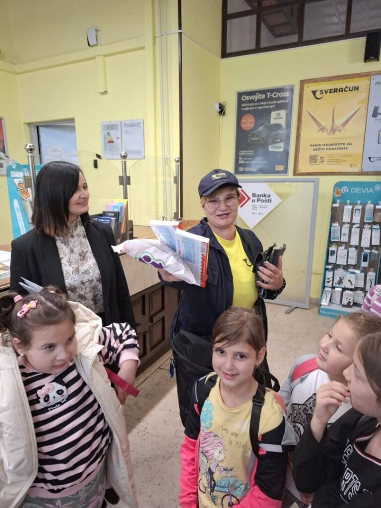 U Gradskoj knjižnici i čitaonici smo poslušali priču Detektiv pauk: Tko je iz vrta naljutio krta? te preuzeli članske iskaznice za učenike 1. i 2.r., uz pomoć kojih smo posudili prve knjige za čitanje. Nakon ručka uputili smo se u Hrvatsku poštu, zavirili u poštarsku torbu te se prisjetili kako se adresira, ispunjava i šalje razglednica. Zahvaljujemo se svima koji su nas lijepo ugostili i naučili puno novih spoznaja.