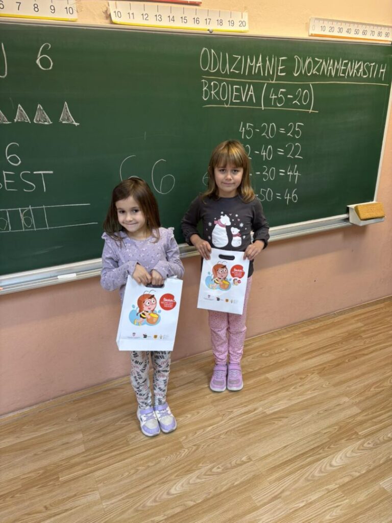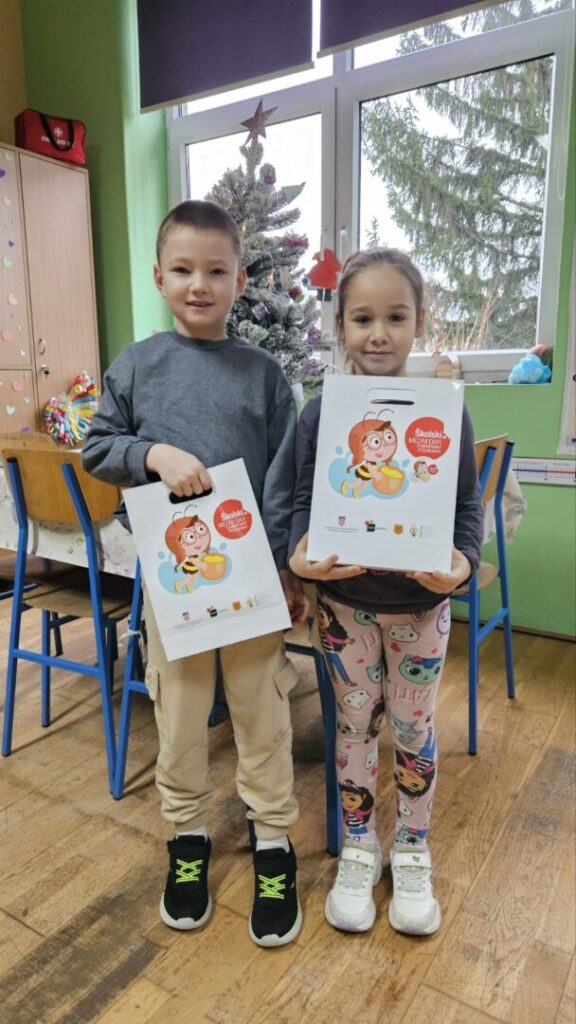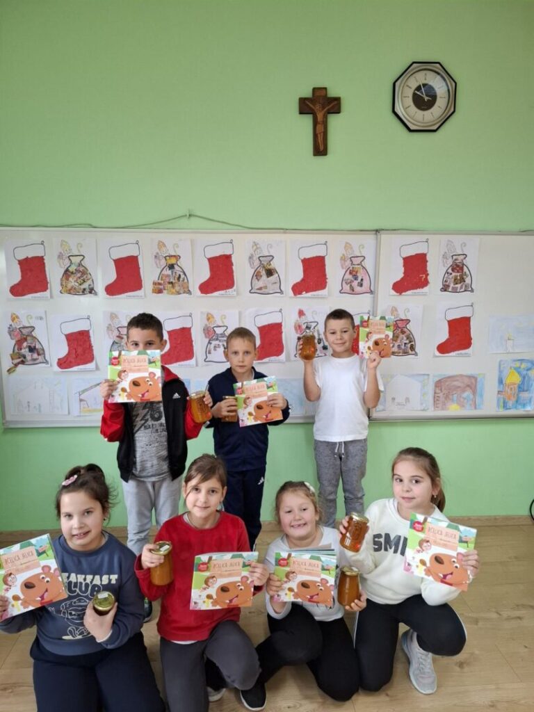 I ove smo godine sudjelovali u programu „Školski medni dan s hrvatskih pčelinjaka“. Učenici prvoga razreda matične i područnih škola dobili su na poklon staklenke meda i poučne slikovnice.